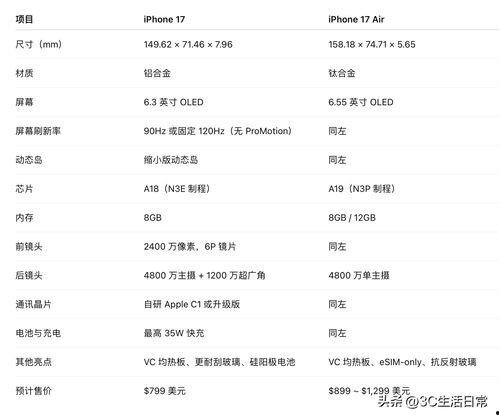 让我们来看看价格。虽然苹果17系列的价格尚未公布,但根据以往的经验,我们可以大胆猜测,苹果17系列的价格将会在6000元到8000元之间。这样的价格,对于一款性能强大、功能丰富的手机来说,可以说是物有所值。